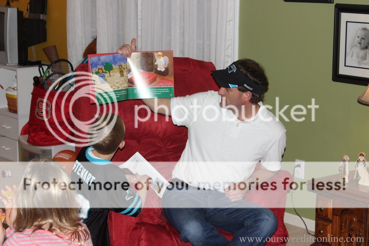 After the game and movie were over, we gathered around the Christmas tree. Since Papa and Nana could not be with us due to illnesses, Uncle Paul read the Christmas story to the kids from the Brick Bible and then we exchanged gifts.