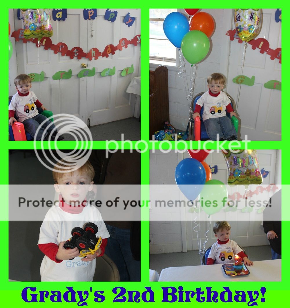 Wow! Where have the last two years gone? For that matter, I still don't know where the last 7 and a half years have gone. I still think Evan should be a baby. Haha! Our sweet little nephew, Grady, just turned 2 this month. He was a wonderful Thanksgiving blessing 2 years ago, and he has just proven that he is a little miracle and keeps surpassing everyone's hopes and expectations. He is walking, talking, and just does not stop. For good reason, his birthday party theme was all about transportation and things that go...just like him! His mom, Aunt Naomi, did a great job preparing the decorations and food for the party. Grady and his cousins had a great time.