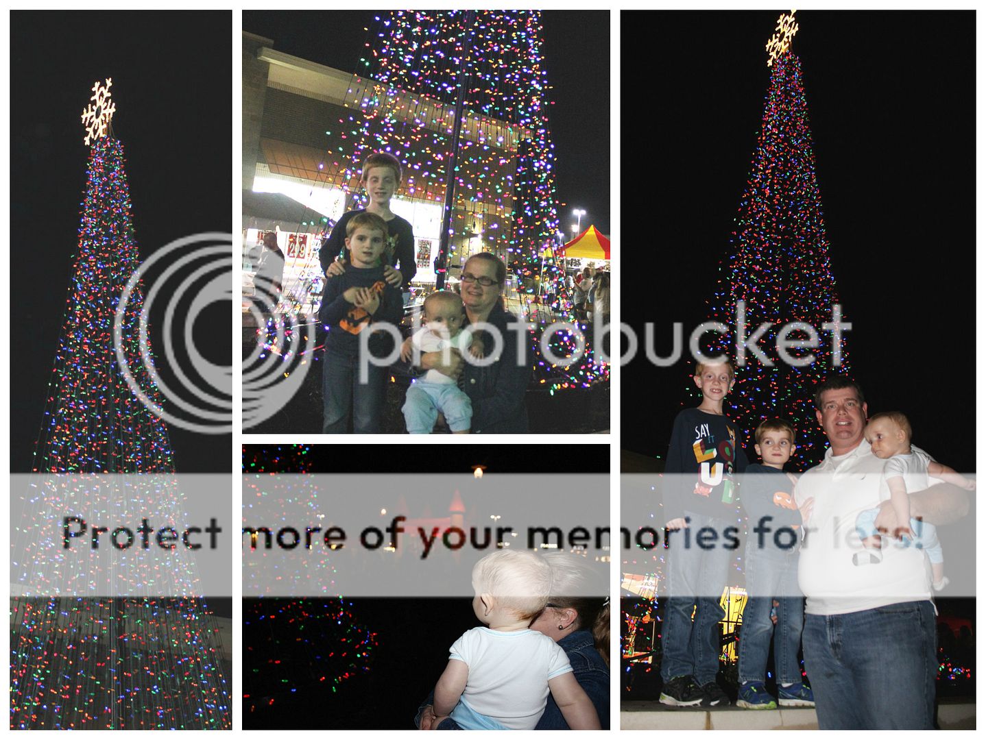 | Our family with the Holly Springs Towne Center tree of lights. I think Baby Mattox enjoyed seeing his first Christmas tree. |